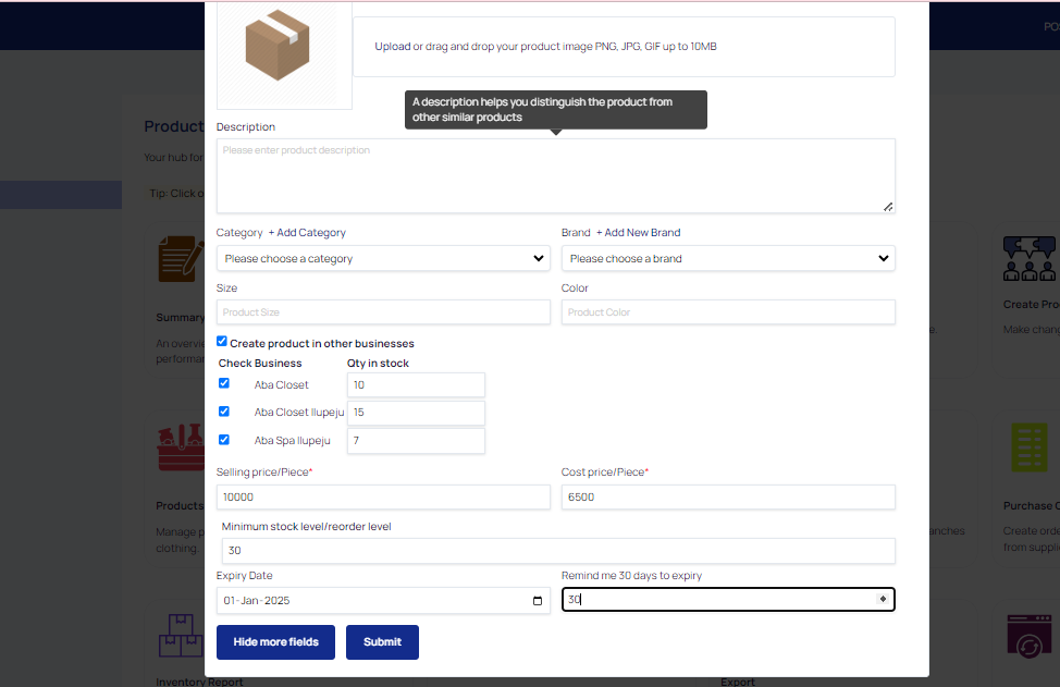 Minimum Stock Level: Set the minimum quantity to avoid stockouts.