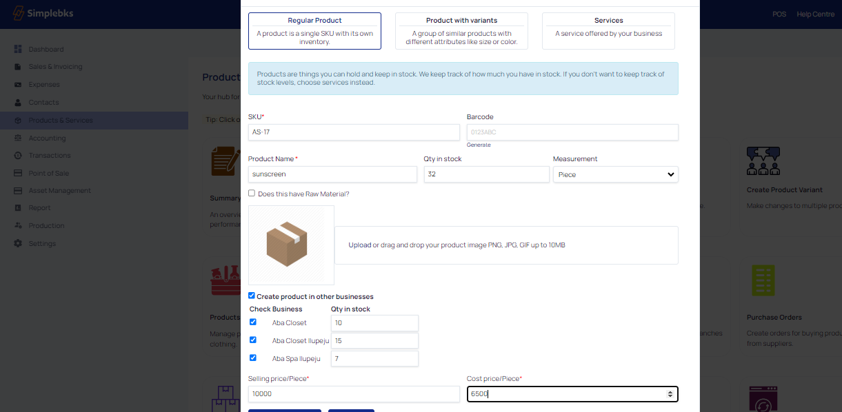 By following these steps, you can easily create and manage your products on Simplebks, whether they are physical goods or services provided by your company.