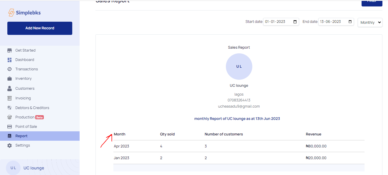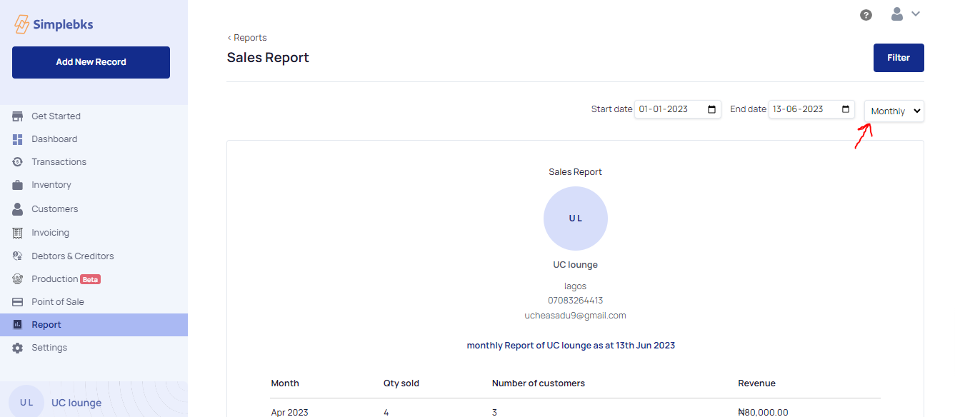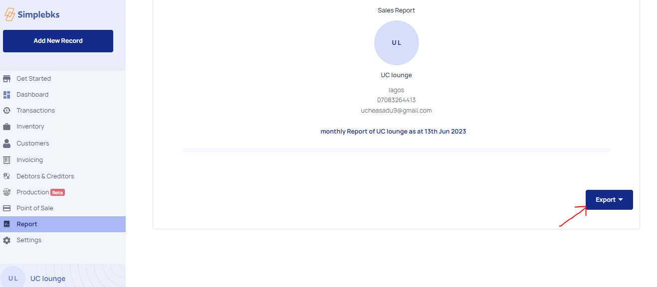 Click on Export> To export your sales report in a CSV format, it will be automatically downloaded for you in CSV.