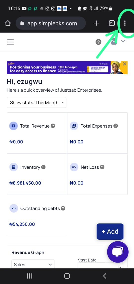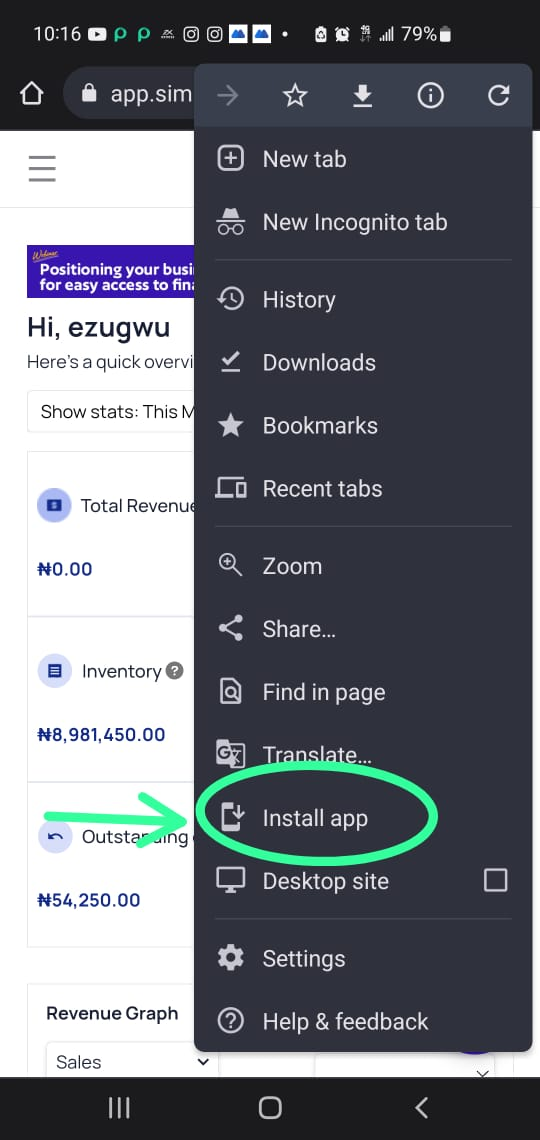 How to add Simplebks to display like a mobile app on your Phone: Android Version