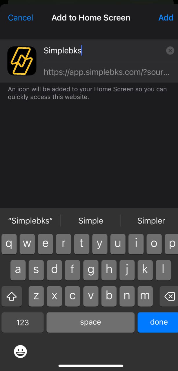 Simplebks will be automatically added to your Mobile App home screen and next time you can open it as an App