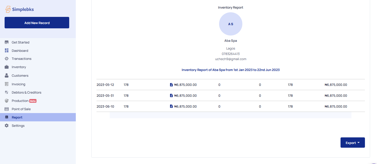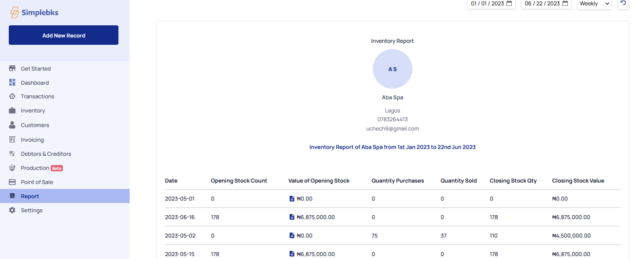 Click on Export> To export your weekly inventory report in a CSV format, it will be automatically downloaded for you in CSV.
